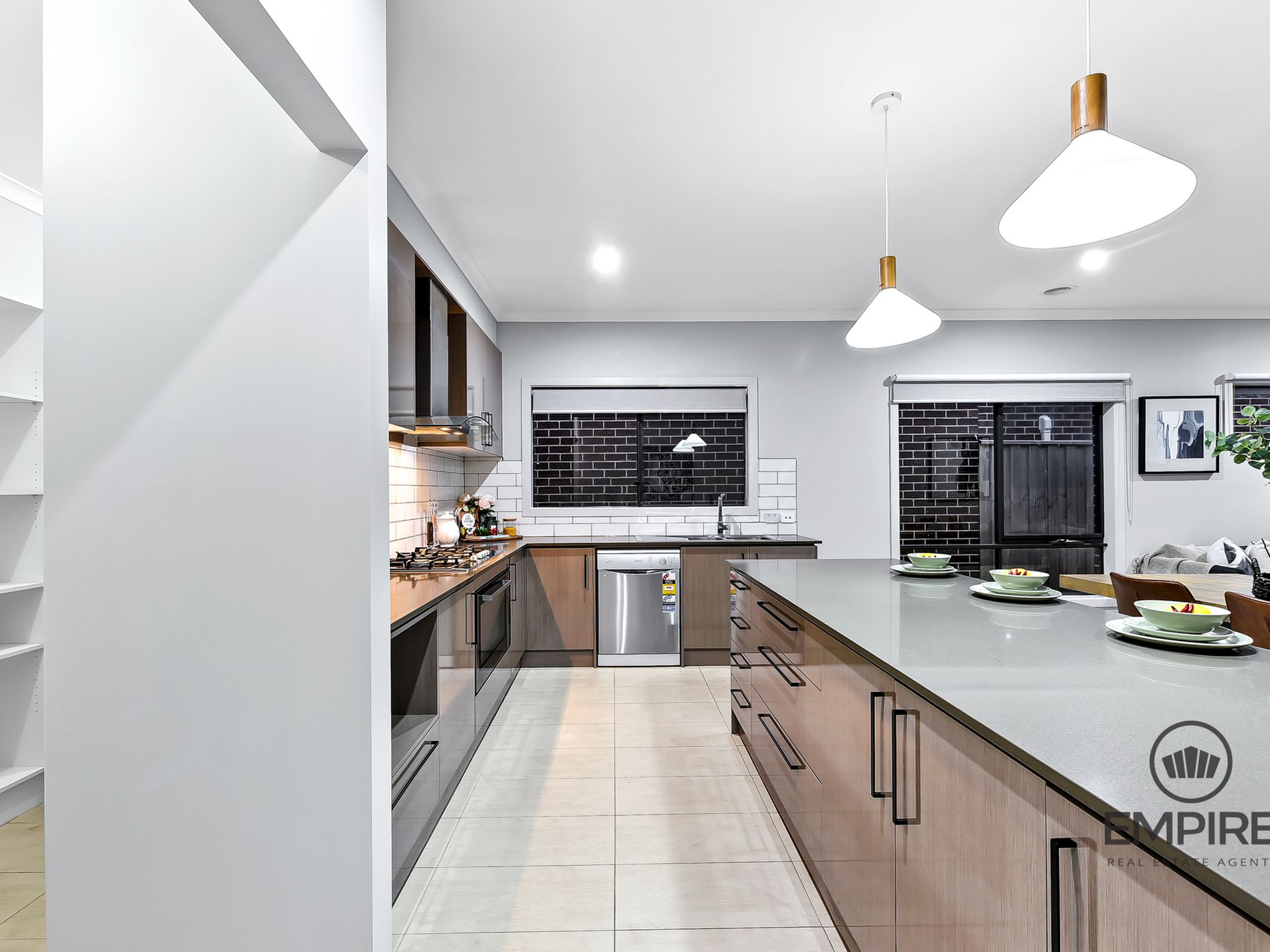 -Stunning kitchen boasting a generous island bench, stainless steel appliances, and a walk-in pantry