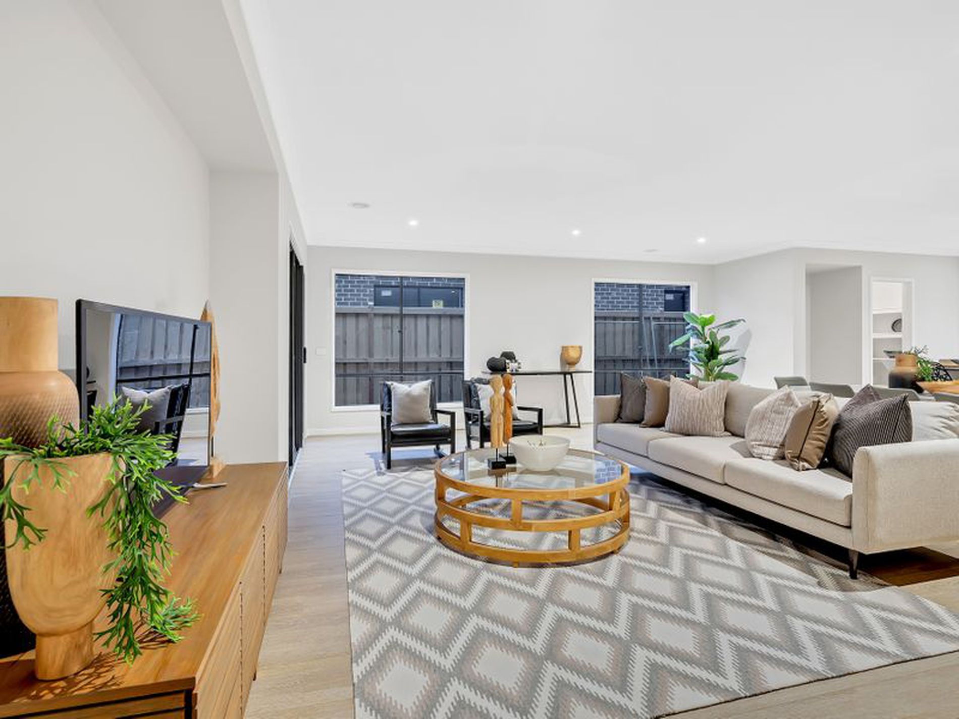 - Three living areas plus dining