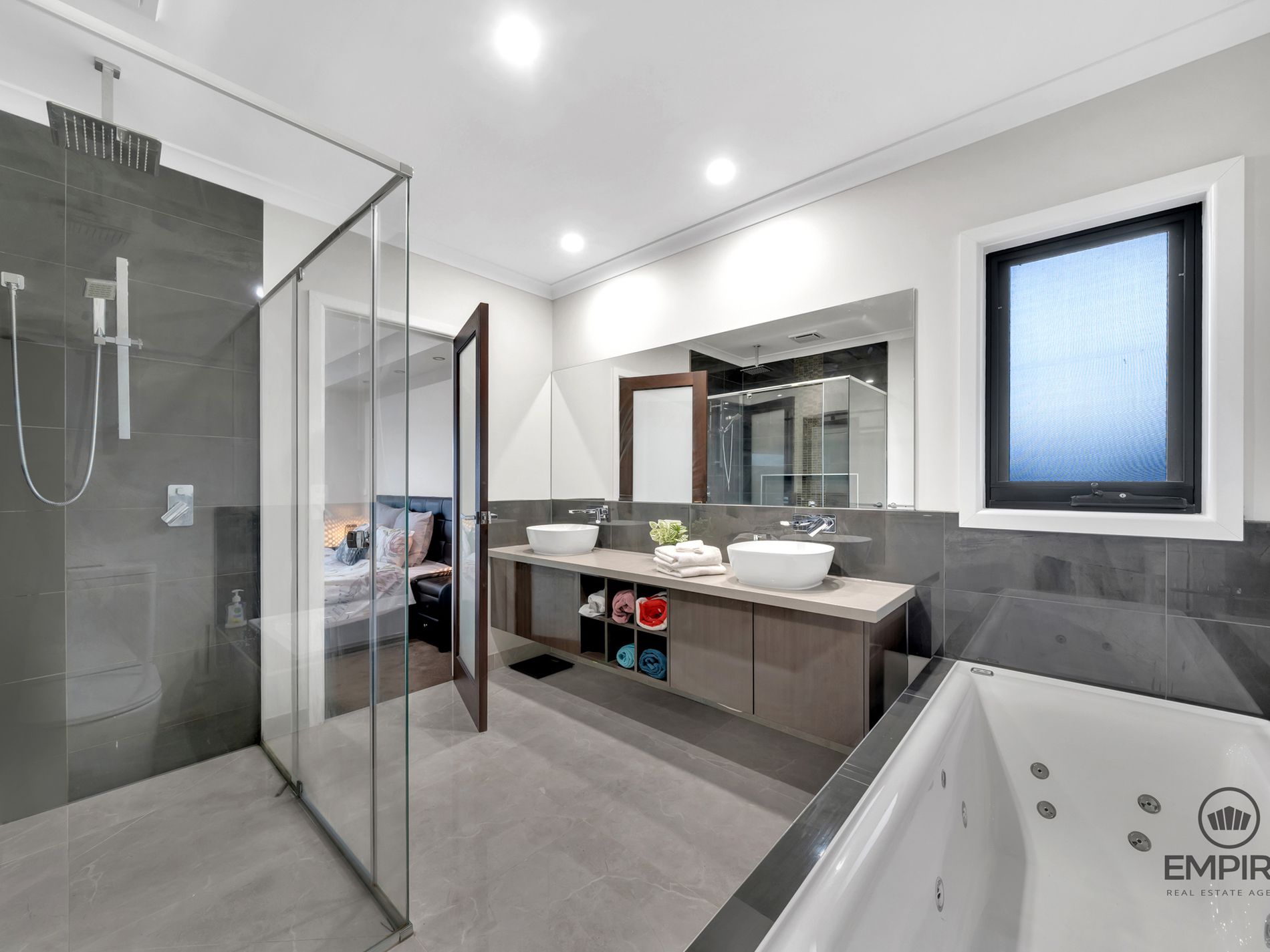 -Luxury master bedroom with walk-in robes, double ensuite and spa bath.