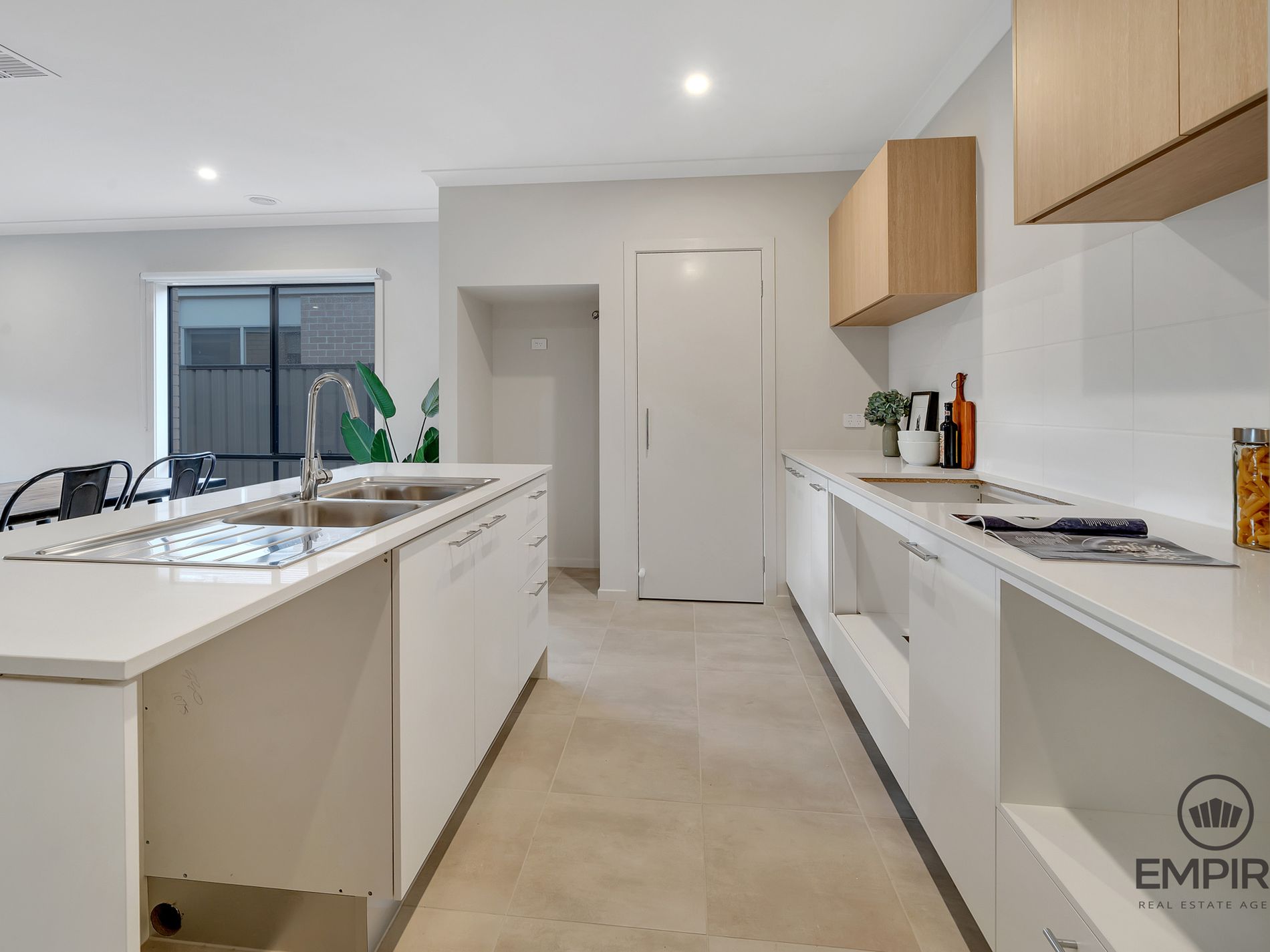 - Spectacular kitchen featuring oversized stone benchtops & stainless appliances